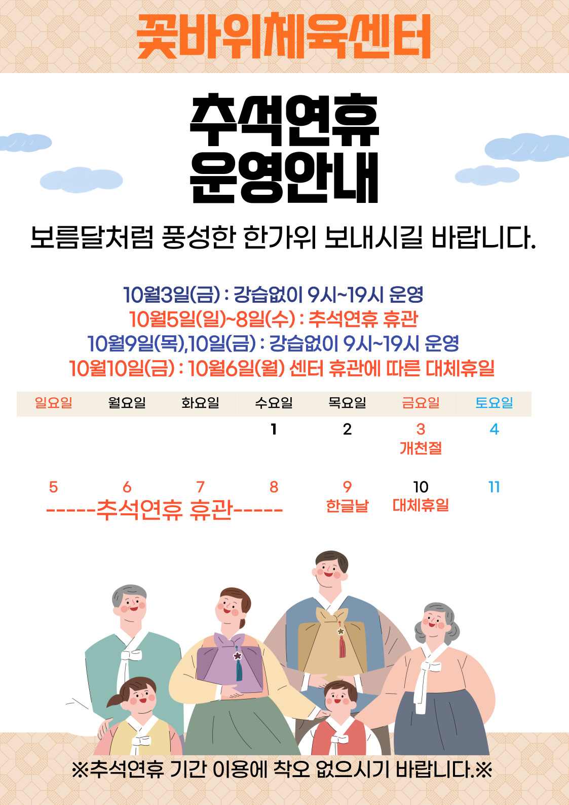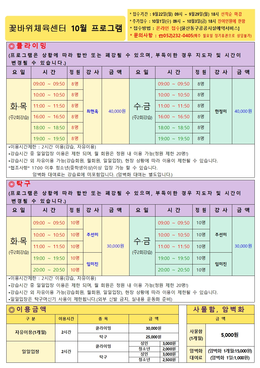 울산동구체육회 꽃바위체육센터 2025년 10월 프로그램 안내