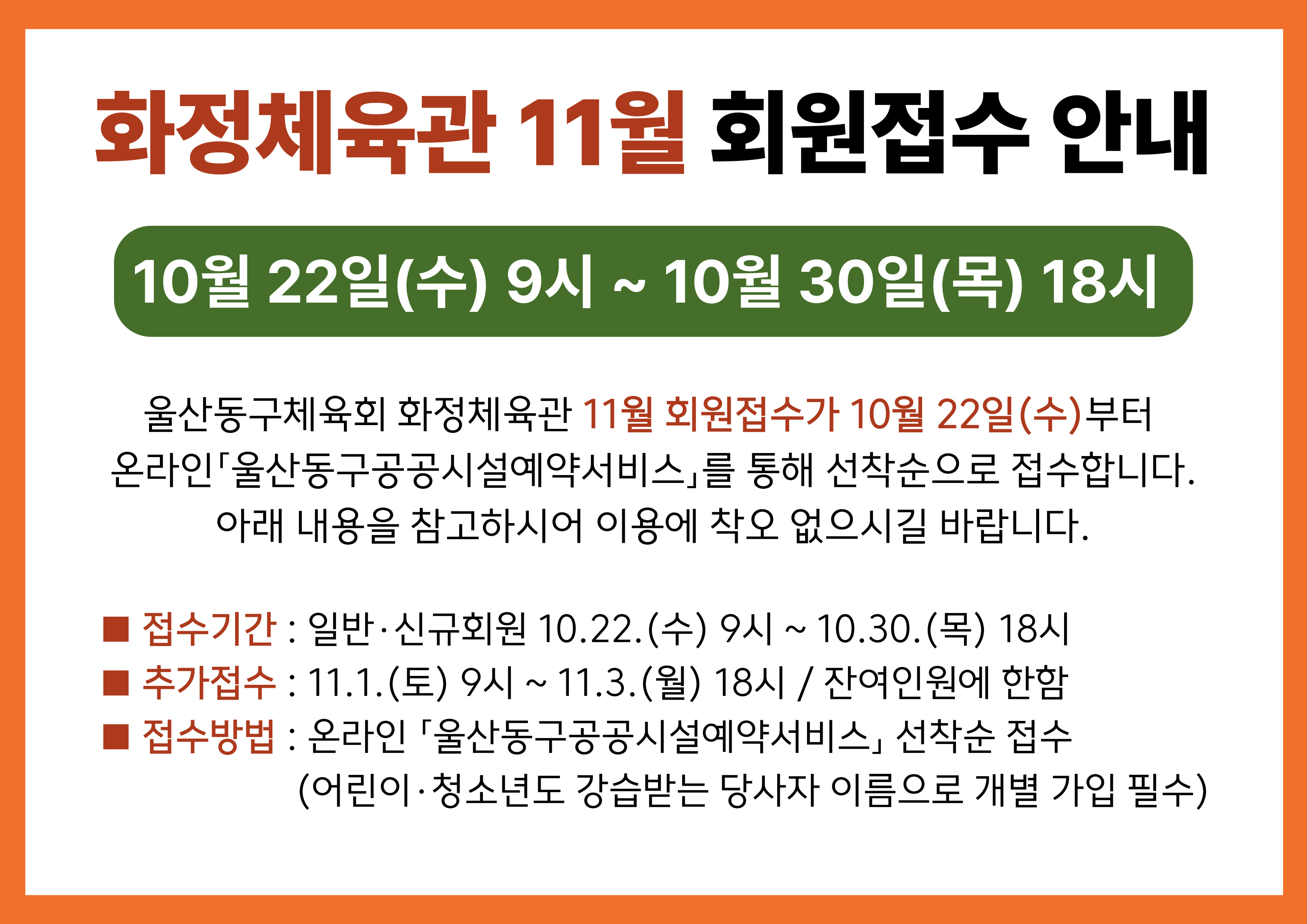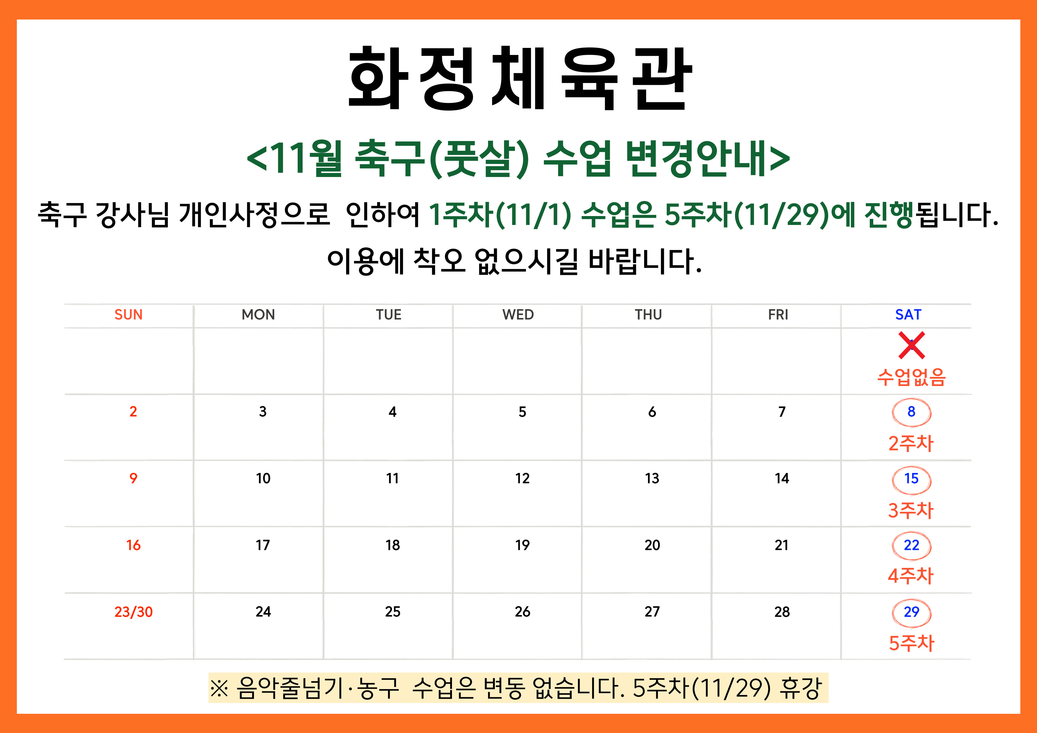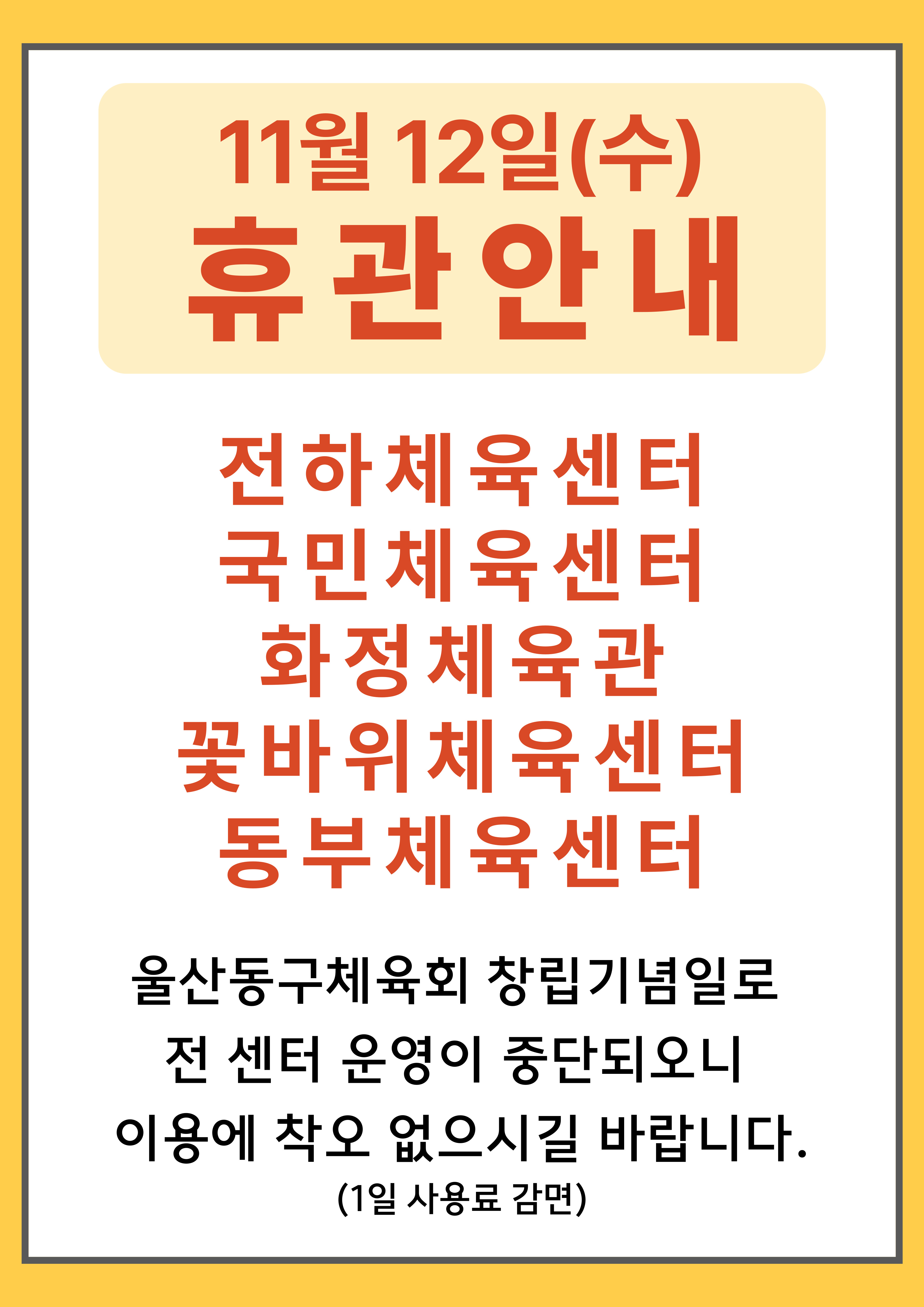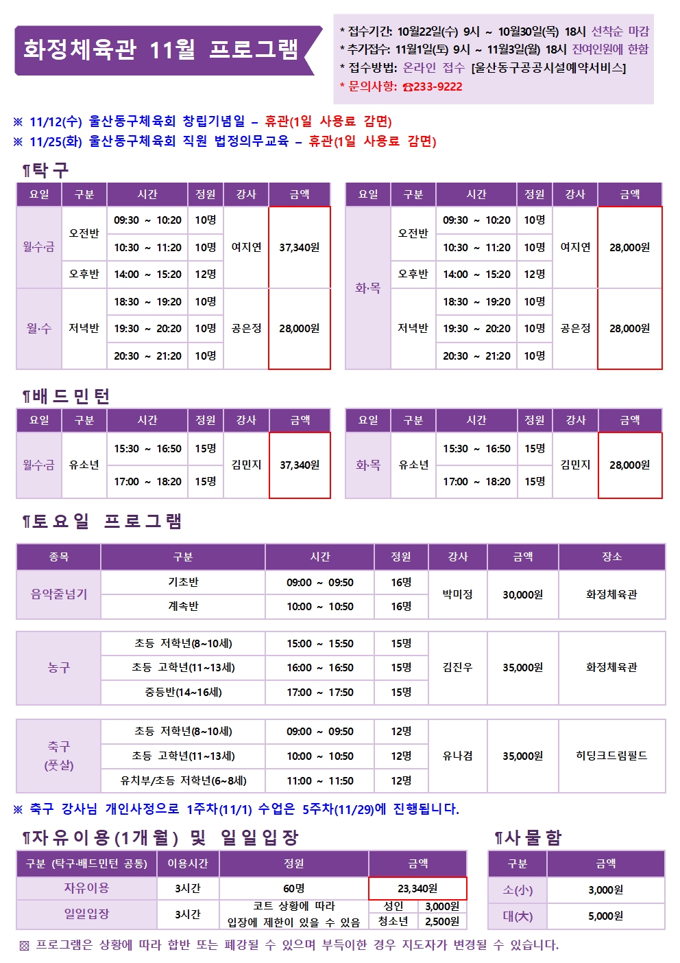 울산동구체육회 화정체육관 2025년 11월 프로그램 안내