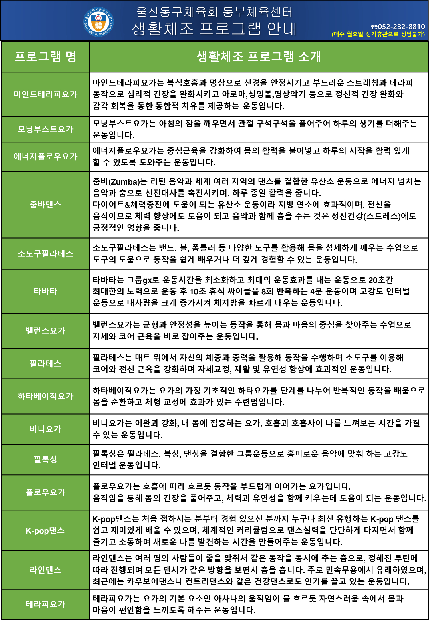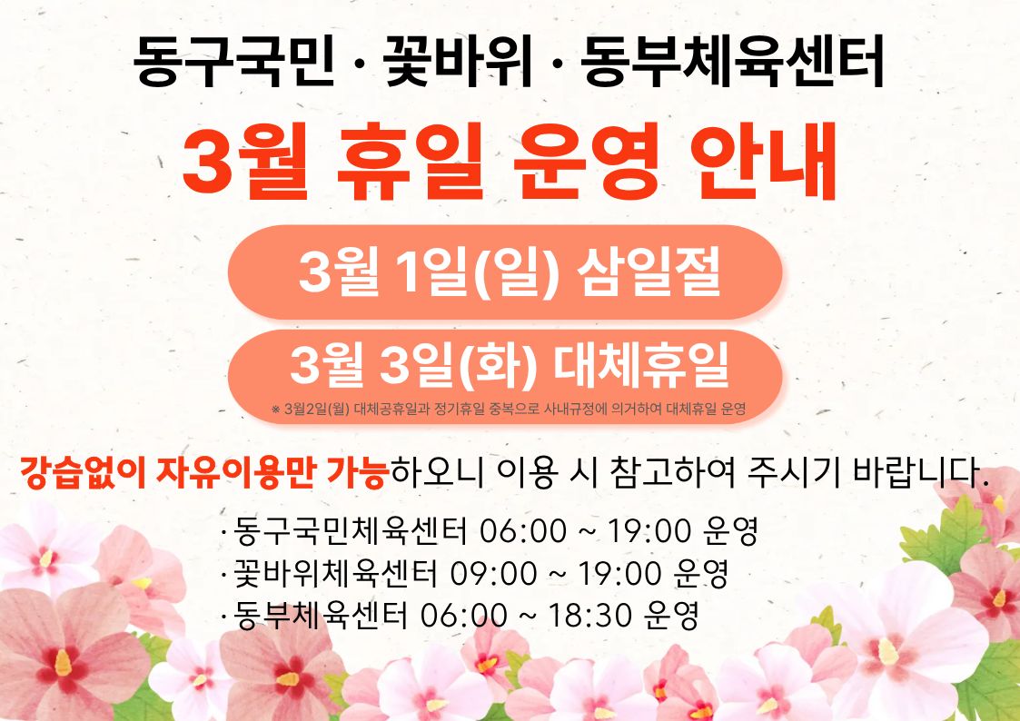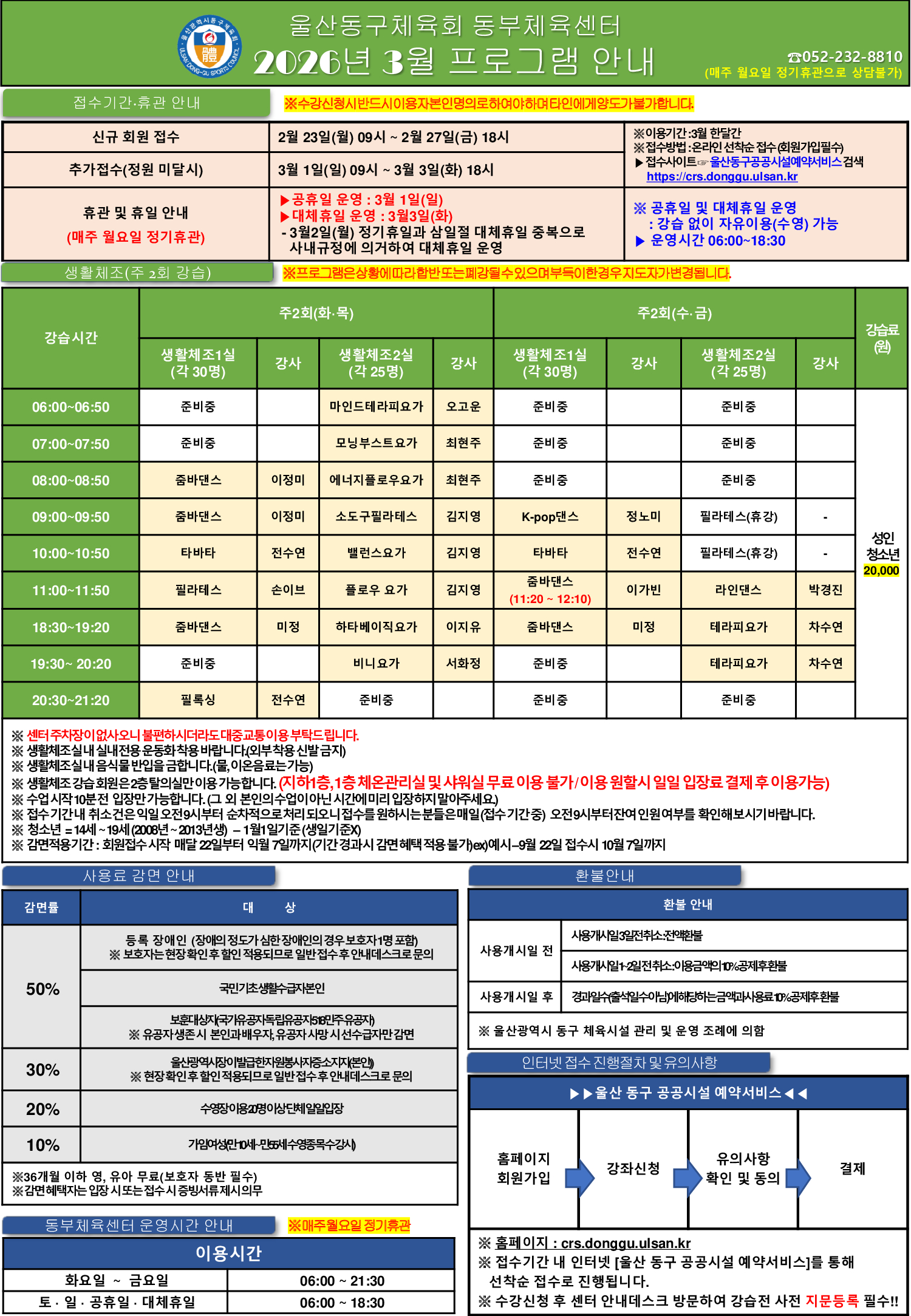 울산동구체육회 동부체육센터 2026년 3월 프로그램안내