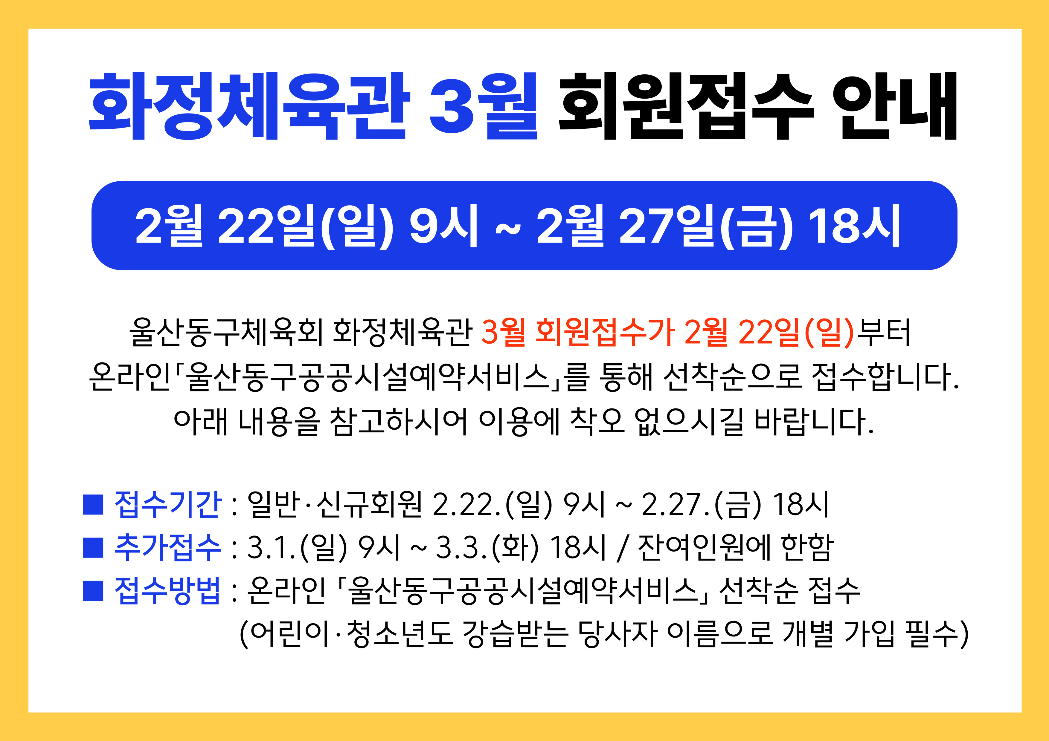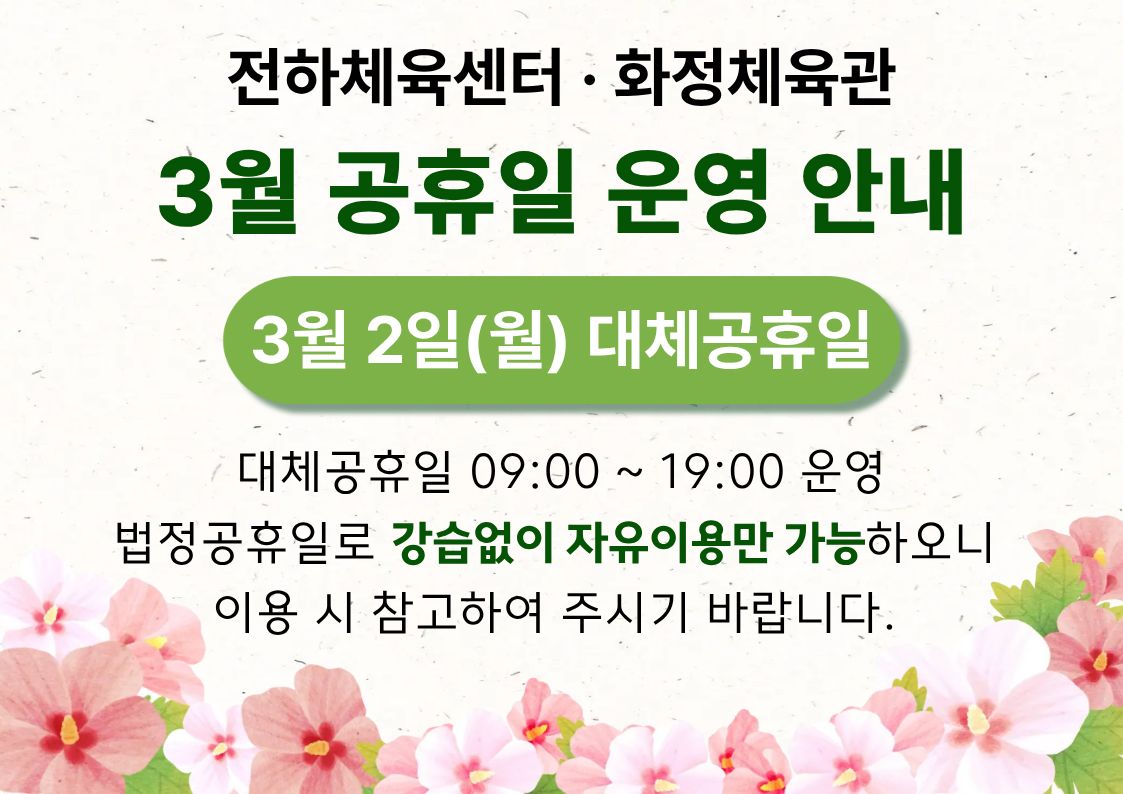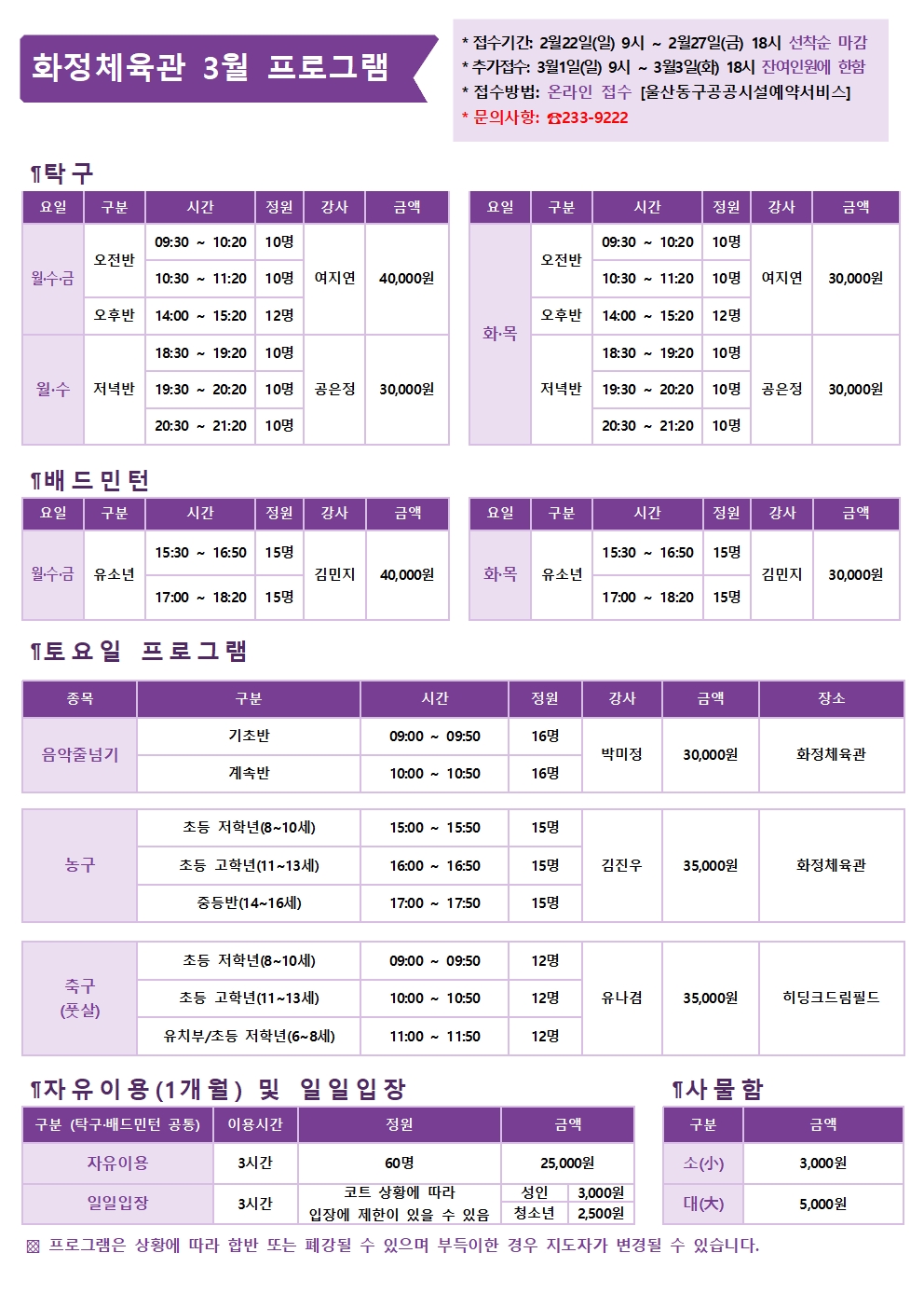울산동구체육회 화정체육관 2026년 3월 프로그램 안내