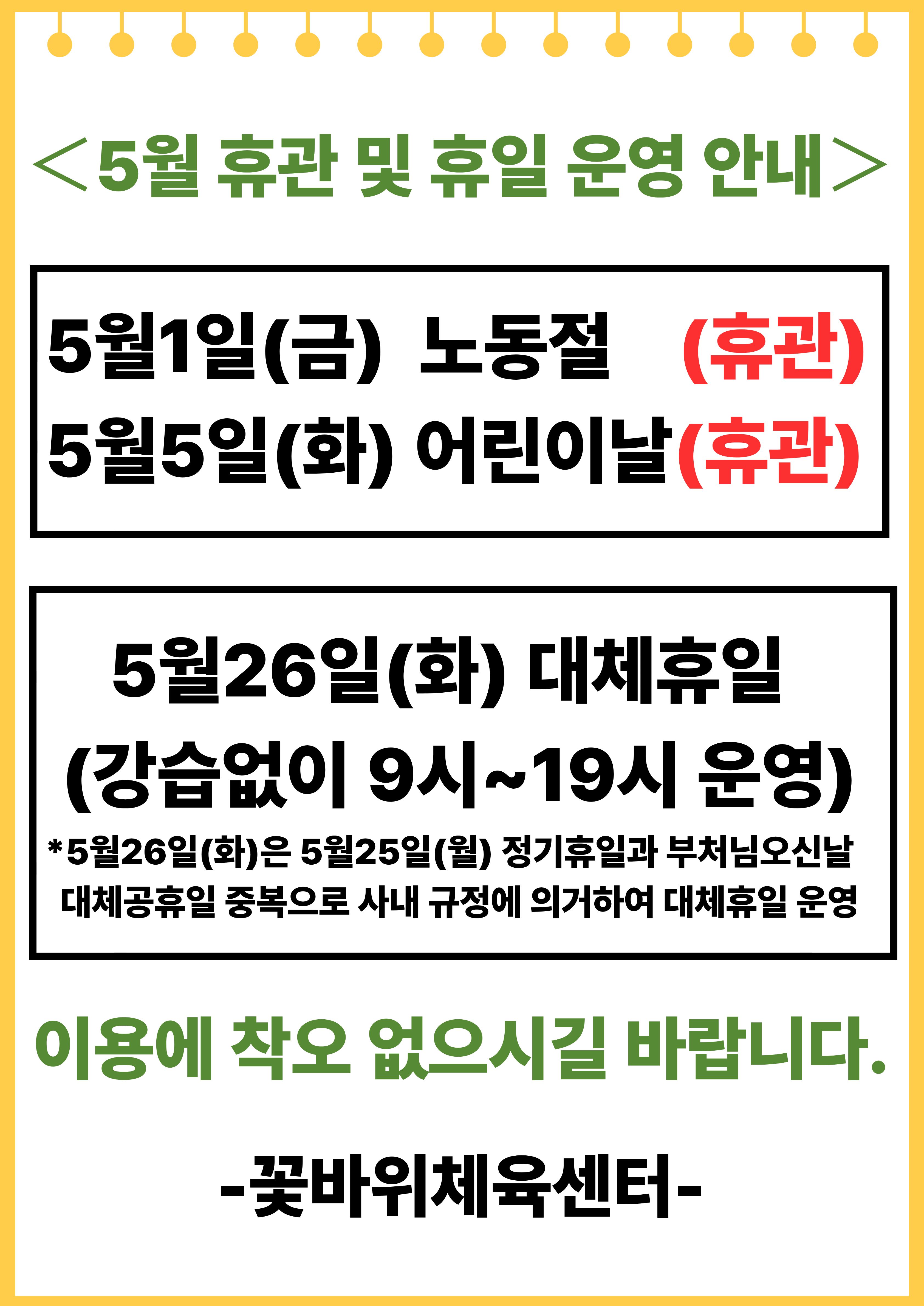 울산동구체육회 꽃바위체육센터 2026년 5월 프로그램 안내