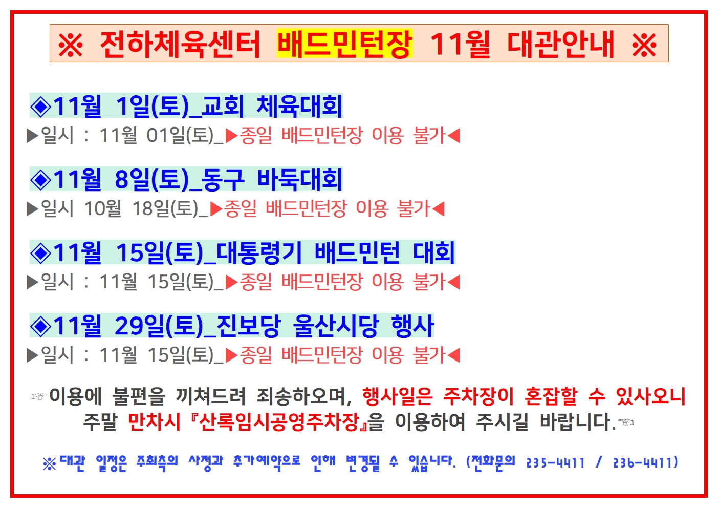 - 울산동구체육회 전하체육센터 2025년 11월 프로그램 ... 2025-10-17