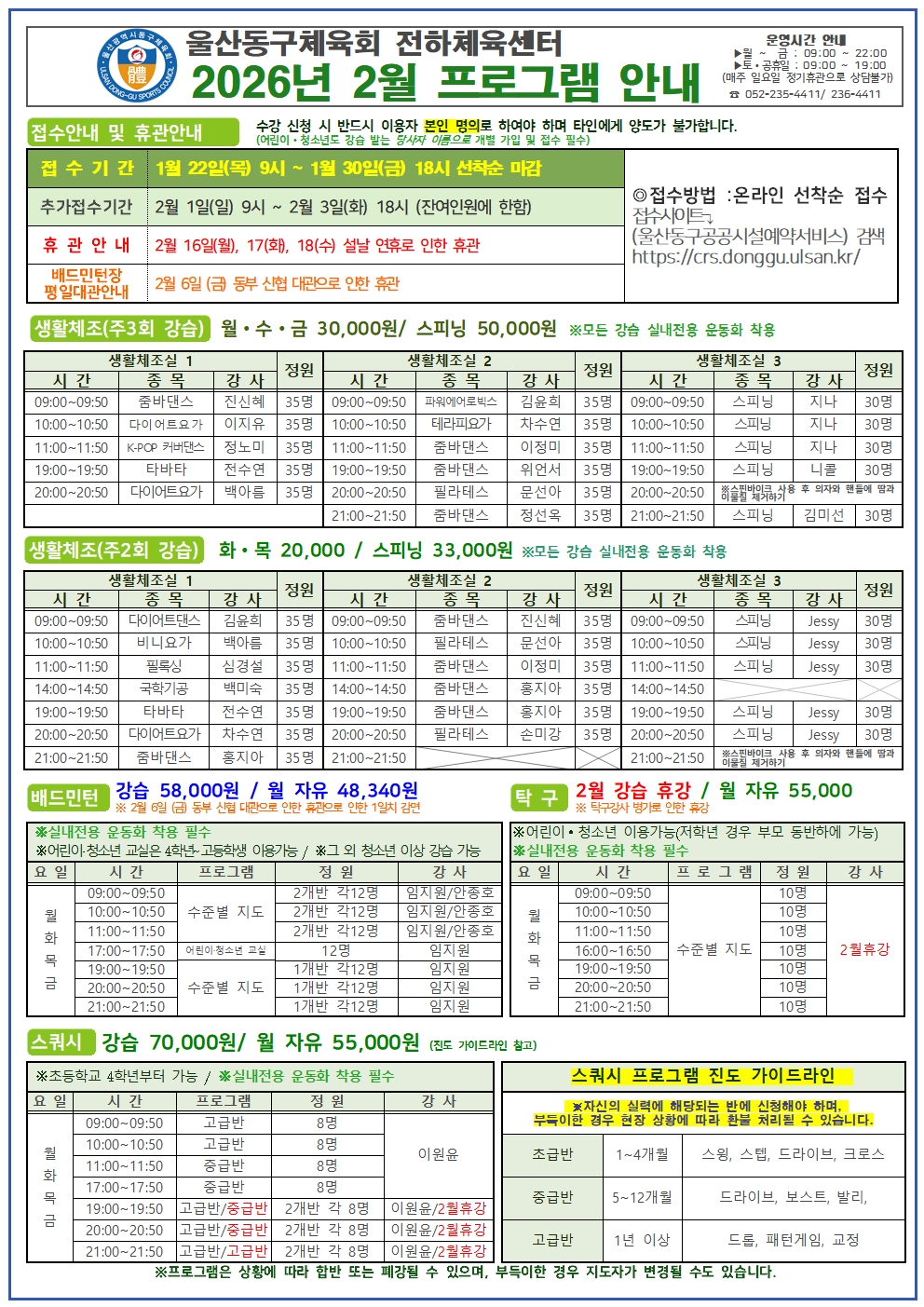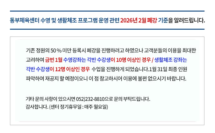 - 울산동구체육회 동구국민체육센터 2026년 2월 프로그램... 2026-01-17