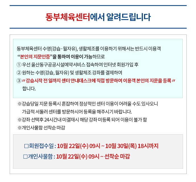 -접수방법 : 온라인 「울산 동구 공공시설예약서비스」선착순 접수(https://crs.donggu.ulsan.kr/index.jsp)