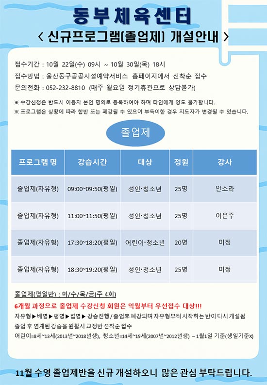 - 울산동구체육회 동부체육센터 2025년 11월 프로그램안... 2025-10-18
