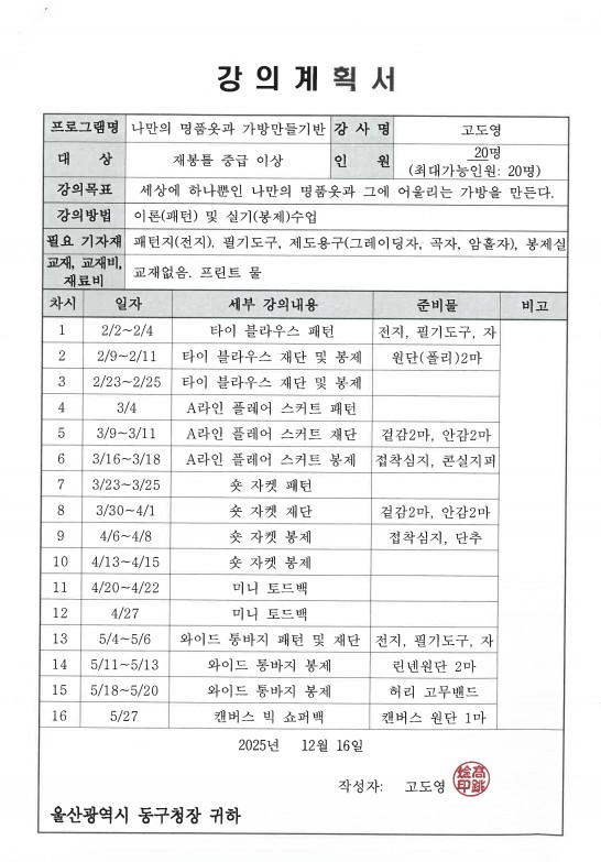 *미싱 유경험자 분들만 신청바랍니다.(초보자는 홈패션기초반 신청)