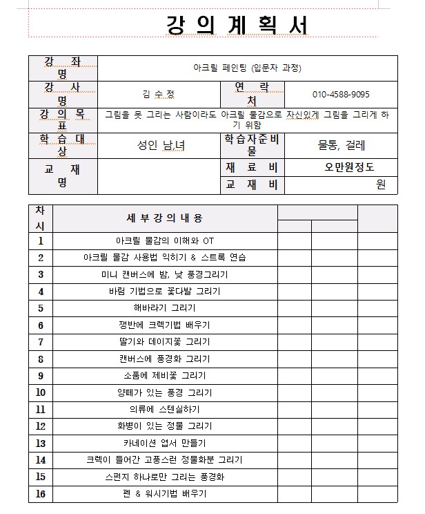 아크릴 그림 입문과정 (취미교실)