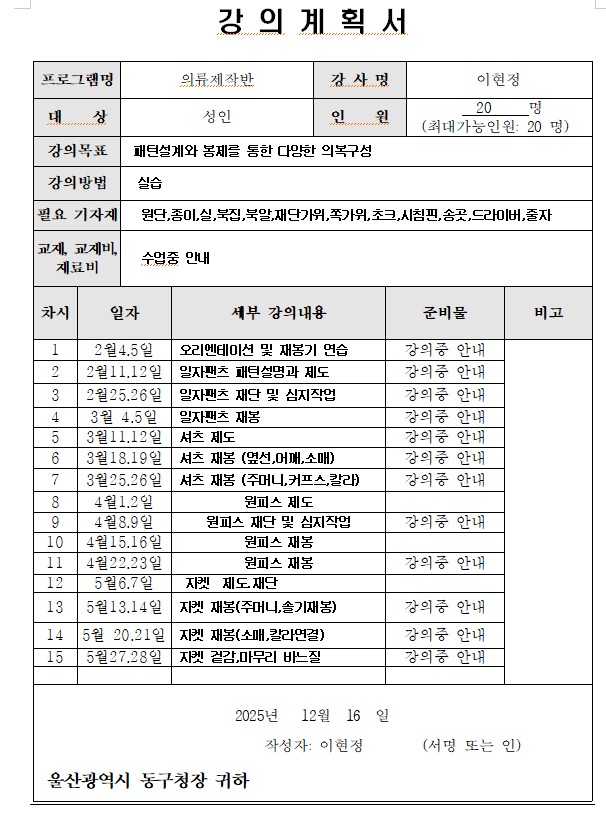 *공업용미싱 유경험자 분들만 신청바랍니다.(초보자는 홈패션기초반 신청)