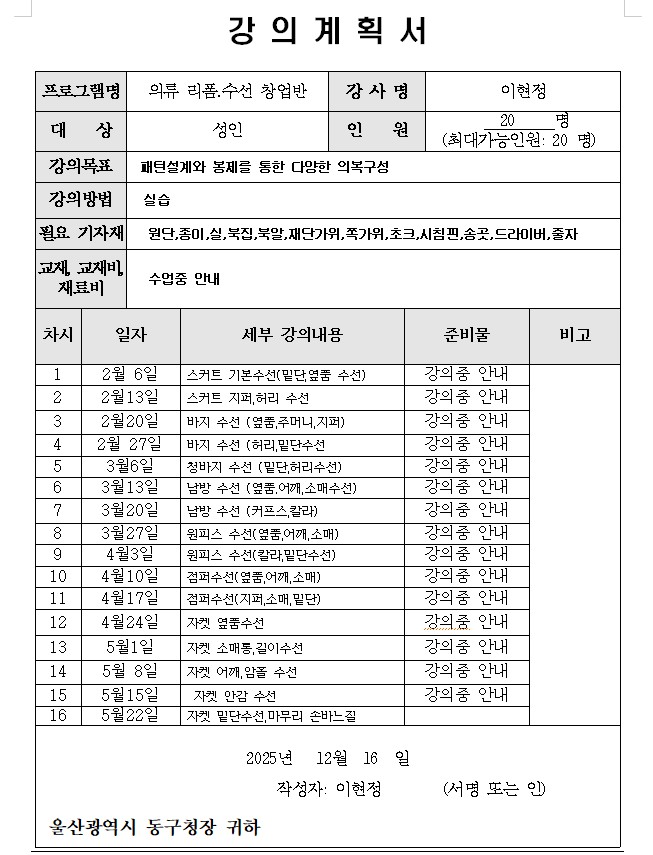 *공업용미싱 유경험자 분들만 신청바랍니다.(초보자는 홈패션기초반 신청)